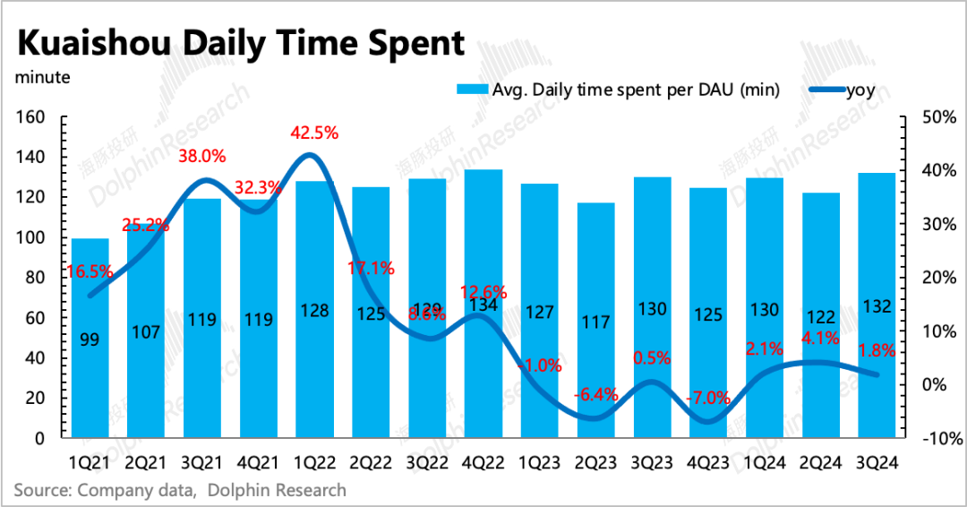 1)日均時長132分鐘/天,同比增加2.3分鐘;
