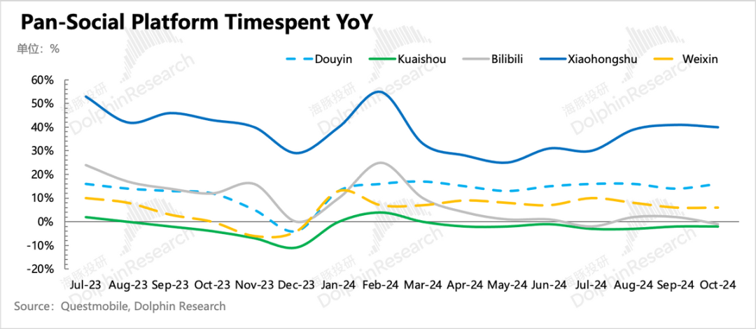 2)用戶使用粘性的DAU/MAU環比持平,一般而言當突然新獲客較多的時候,優于新用戶的粘性較低,因此會拉低總數值。但實際不僅沒拉低,并且還維持在曆史高位的水平。