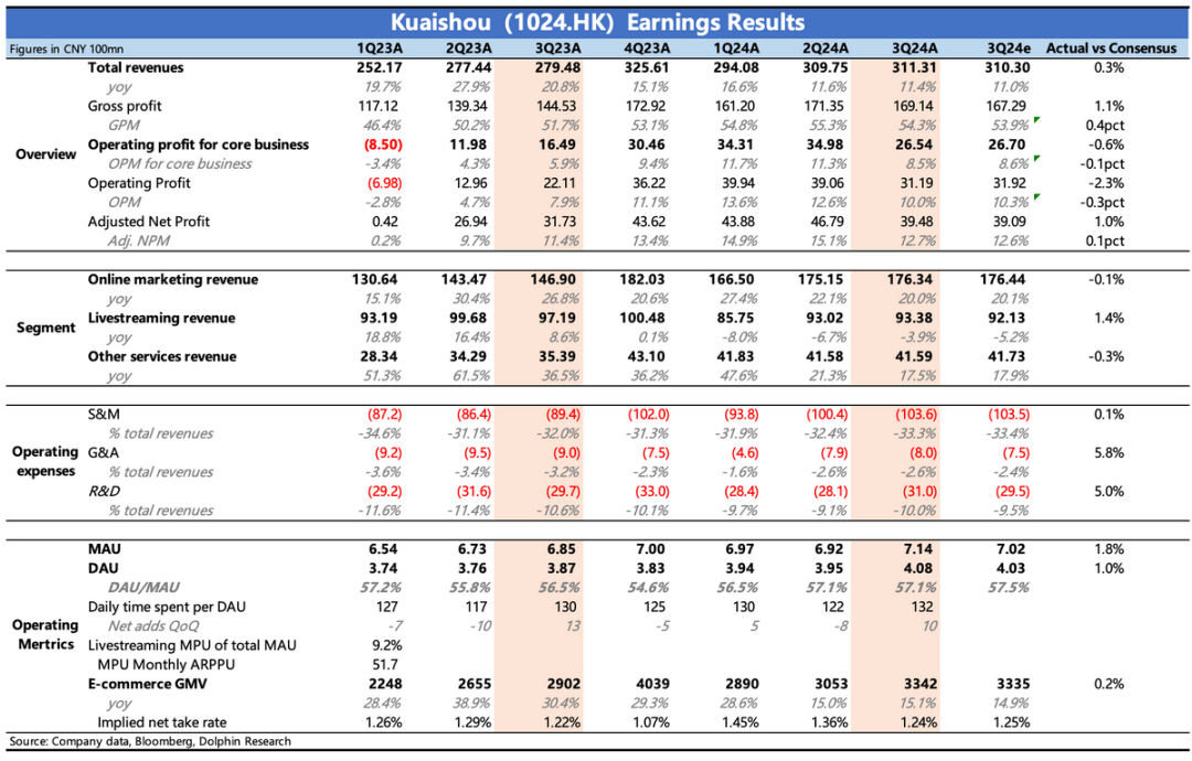 雖然公司也在積極探尋多條增長曲線,本地生活、短劇、遊戲、在線招聘等等。但短期快手的電商屬性仍然較重,業績也更易受電商尤其是KOL直播電商行業趨勢的影響較大。在Q3業績已經充分預期下,對于Q4的展望就非常關鍵。