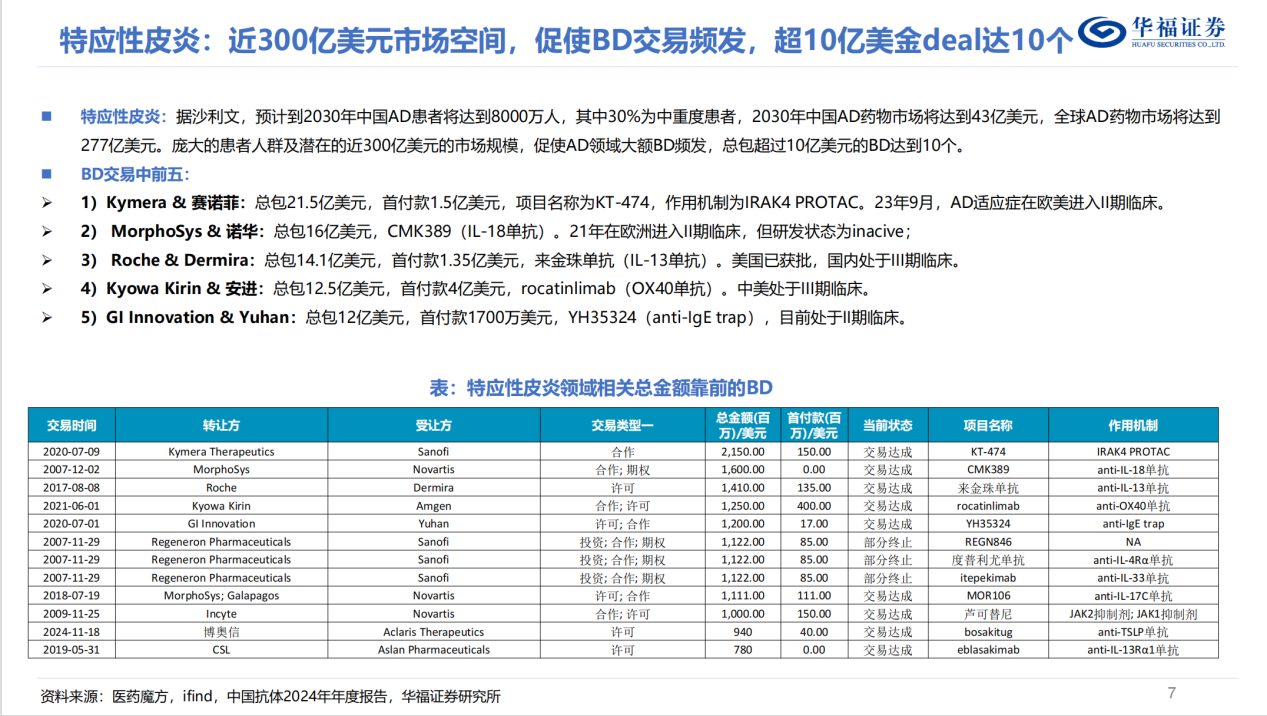 JAK抑制劑烏帕替尼雖起效快但存在嚴重安全性風險;IL-31R抗體奈莫麗珠單抗雖能有效改善瘙癢症狀,但皮損改善效果不理想,需與外用糖皮質激素聯用。即便是年銷售額超140億美元的“藥王”度普利尤單抗,在快速起效止癢方面仍不能滿足市場需求。綜合來看,特應性皮炎市場仍有巨大未滿足的需求。