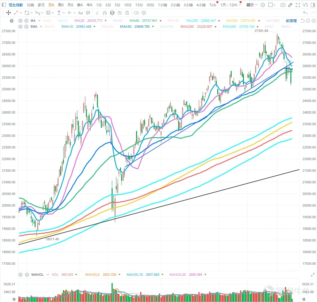 繼10月10日的大跌後,上周美股大市仍然在區間之内,三大指數均在20天線附近徘徊,難言已企穩20天線。事實上,上周五又迎來了一個TACO,算是給了大家一個喘息的空間,不過仍未重上上周四地區銀行「爆雷」前的高點。港股方面,恒指明顯地比美股大市更弱,不但顯著低于20天線,其實亦已經跌穿了50天線。不過,上周五的TACO後,夜期已大幅反彈,算是比較好的消息,但星期一高開的話,有一定機會被資金減倉拖累,畢竟技術上仍偏弱勢,而且早前亦已累積一定升幅。預計短期内來回波動的情況還是比較高。