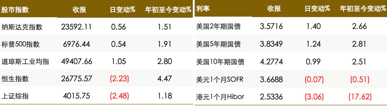 美國股市标普500指數周一收高,受助于芯片制造商及其他人工智能相關股上漲,小型股也大幅攀升。美國公債收益率上升,交易員正在評估前理事沃什是否會為美聯儲帶來比以往更鴿派的政策立場。美元兌主要貨币全線上漲,貴金屬抛售引發避險情緒。油價下跌逾3美元,此前美國總統特朗普表示伊朗正與華盛頓進行"嚴肅對話",暗示與該OPEC成員國的緊張局勢有所緩和。金銀價格續跌,芝加哥商品交易所集團提高保證金要求,加劇了上周沃什被提名為美聯儲下任主席後引發的急劇抛售。